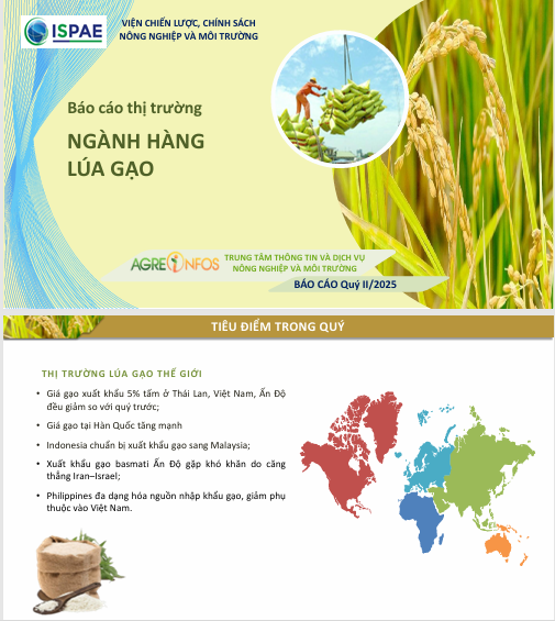 Q2/2025, diện tích gieo cấy lúa Đông- Xuân 2025 đạt 2,97 triệu ha, tăng 16.200 ha so với năm trước, sản lượng ước đạt 20,4 triệu tấn; lúa Hè- Thu đã xuống giống 1,77 triệu ha, trong đó ĐBSCL chiếm 1,37 triệu ha, tăng nhẹ so với cùng kỳ 2024;