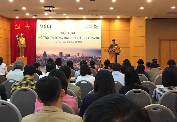 Ngày 31/10, Ngân hàng Standard Chartered Việt Nam phối hợp với Phòng Thương mại và Công nghiệp Việt Nam (VCCI) tổ chức Hội thảo “Hỗ trợ thương mại quốc tế cho doanh nghiệp vừa và nhỏ” tại Hà Nội, với sự tham dự của hơn 100 doanh nghiệp vừa và nhỏ hoạt động trong nhiều lĩnh vực khác nhau.