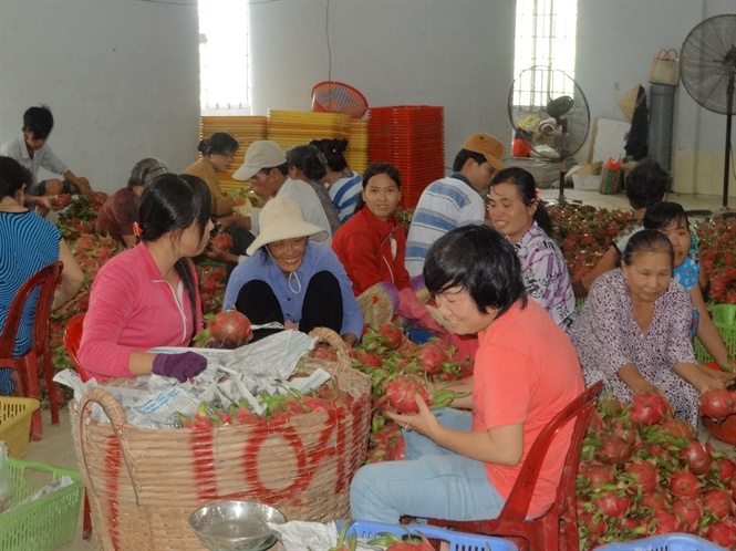 Phân loại thanh long ở HTX Tầm Vu (Long An) |