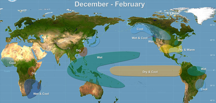 Hôm thứ 5 vừa qua, CPC đã công bố triển vọng thời tiết Mỹ trong giai đoạn tháng 12/2017 – 2/2018, theo đó cho thấy một mùa đông điển hình của La Nina: lạnh hơn và ẩm ướt hơn ở phía Bắc, Tây Bắc; và ấm và khô hơn ở các khu vực phía Nam.