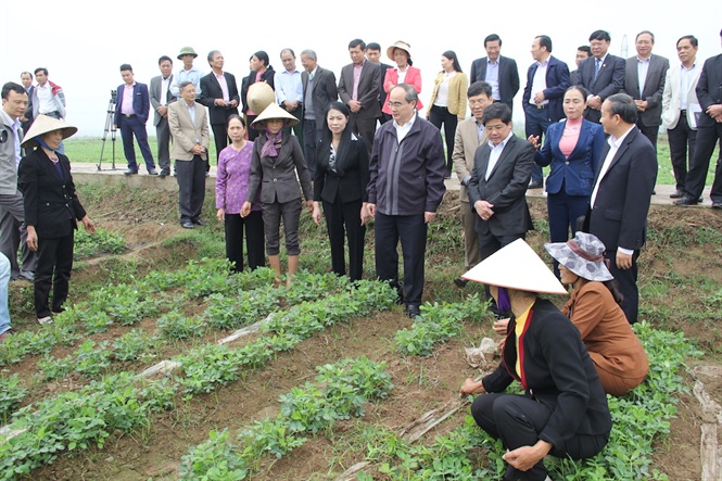 Ông Nguyễn Thiện Nhân trong một lần thăm mô hình HTX tiêu biểu tại huyện Bình Xuyên, Vĩnh Phúc |