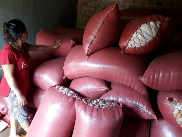 Cà phê VietGAP của ông Hậu vẫn cất trong kho vì giá bán không tương xứng mức đầu tư. |