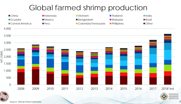 Steven Brunell, giám đốc mua hàng thủy sản và thịt của Quaker Valley Foods, cũng chia sẻ nhận định này. “Chúng ta có sản xuất tôm toàn cầu năm 2017 ở mức rất cao; đồng thời tồn kho tôm trong các kho lạnh cũng còn lớn. Hàng hóa vẫn chưa trôi trong thời điểm hiện tại. Tại sao mọi người vẫn còn tiếp tục tăng sản xuất?”.