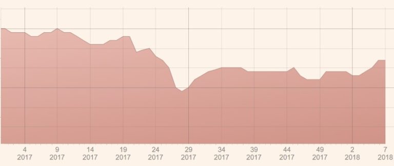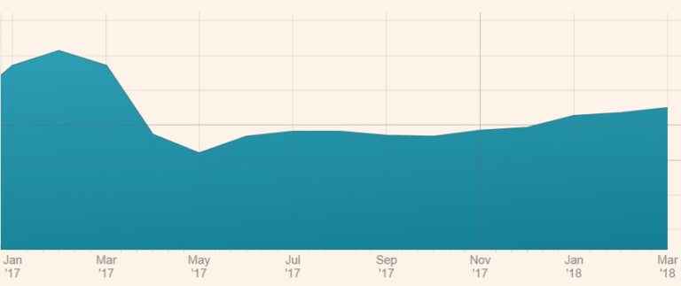 Giá tôm cổng trại Thái Lan loại 60 con/kg, 01/17-03/18.