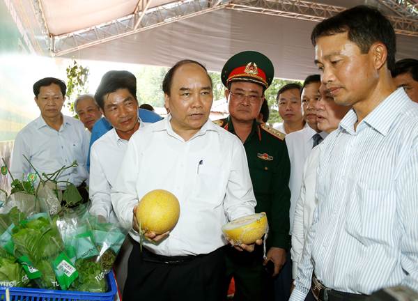 Thủ tướng Nguyễn Xuân Phúc tham quan mô hình nông nghiệp công nghệ cao tại Bình Phước. (Ảnh: H.N) |