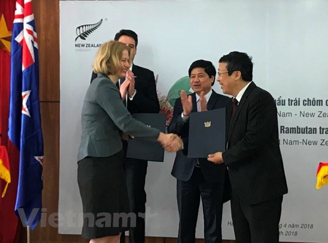 Lễ công bố Xuất khẩu chôm chôm của Việt Nam sang New Zealand, ngày 10/4. (Ảnh: PV/vietnam+) |