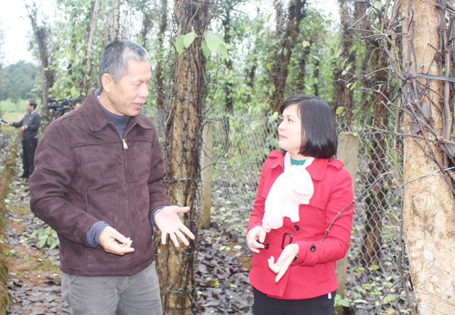Bà Nguyễn Hồng Phương cùng nhà khoa học kiểm tra vườn tiêu của người dân Vĩnh Linh bị bệnh chết nhanh |