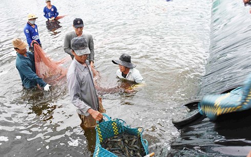 Tôm rớt giá mạnh, người nuôi thua lỗ nặng dù trúng mùa. (Ảnh: Báo Lao động) |