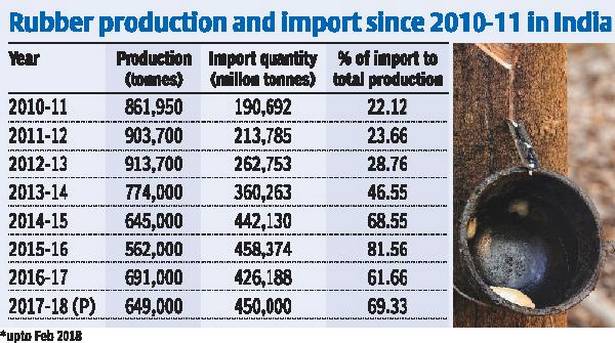 Nhập khẩu cao su tự nhiên của Ấn Độ cũng chạm mức cao kỷ lục 469.433 tấn trong năm tài khóa 2017-18, tăng 10,1% so với năm tài khóa 2016-17. Khoảng 70% lượng nhập khẩu thông qua kênh nhập khẩu trả thuế. Theo báo cáo mới công bố của Hội đồng Cao su, nhập khẩu cao su tự nhiên của Ấn Độ tăng bất thường do diễn biến giá, tiêu dùng cao su nội địa tăng và sản xuất cao su nội địa thấp hơn dự báo.