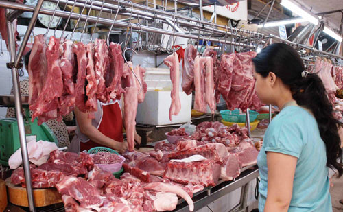 Giá lợn xuất chuồng tăng mạnh kéo theo giá thịt lợn trên thị trường cũng đang nhảy múa theo ngày. Chị Nguyễn Bích Phượng ở Nguyễn Du, Hai Bà Trưng, Hà Nội than thở: “Tôi đi chợ giá thịt lợn mỗi ngày một khác. Giá thịt nạc vai hồi đầu tháng 5 còn ở mức 80.000 đồng/kg, nhưng hiện tại đã ở mức 110.000 đồng/kg, sườn cũng đã ở mức 120.000 đồng/kg. Trong khi đó, mấy người bán thịt tại chợ còn cho biết, giá sẽ còn lên mà không hiểu nguyên nhân do đâu”.