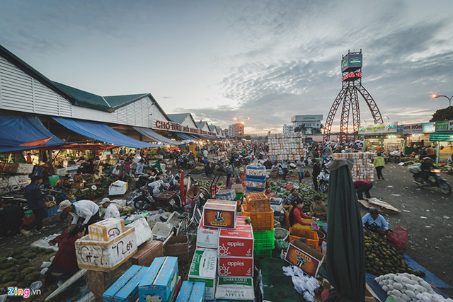 Càng về sáng, chợ đầu mối Tam Bình (Thủ Đức - TP. Hồ Chí Minh) càng đông, chủ yếu là những người mua lẻ ở những cửa hàng được phân lô, thu phí bên ngoài chợ. |