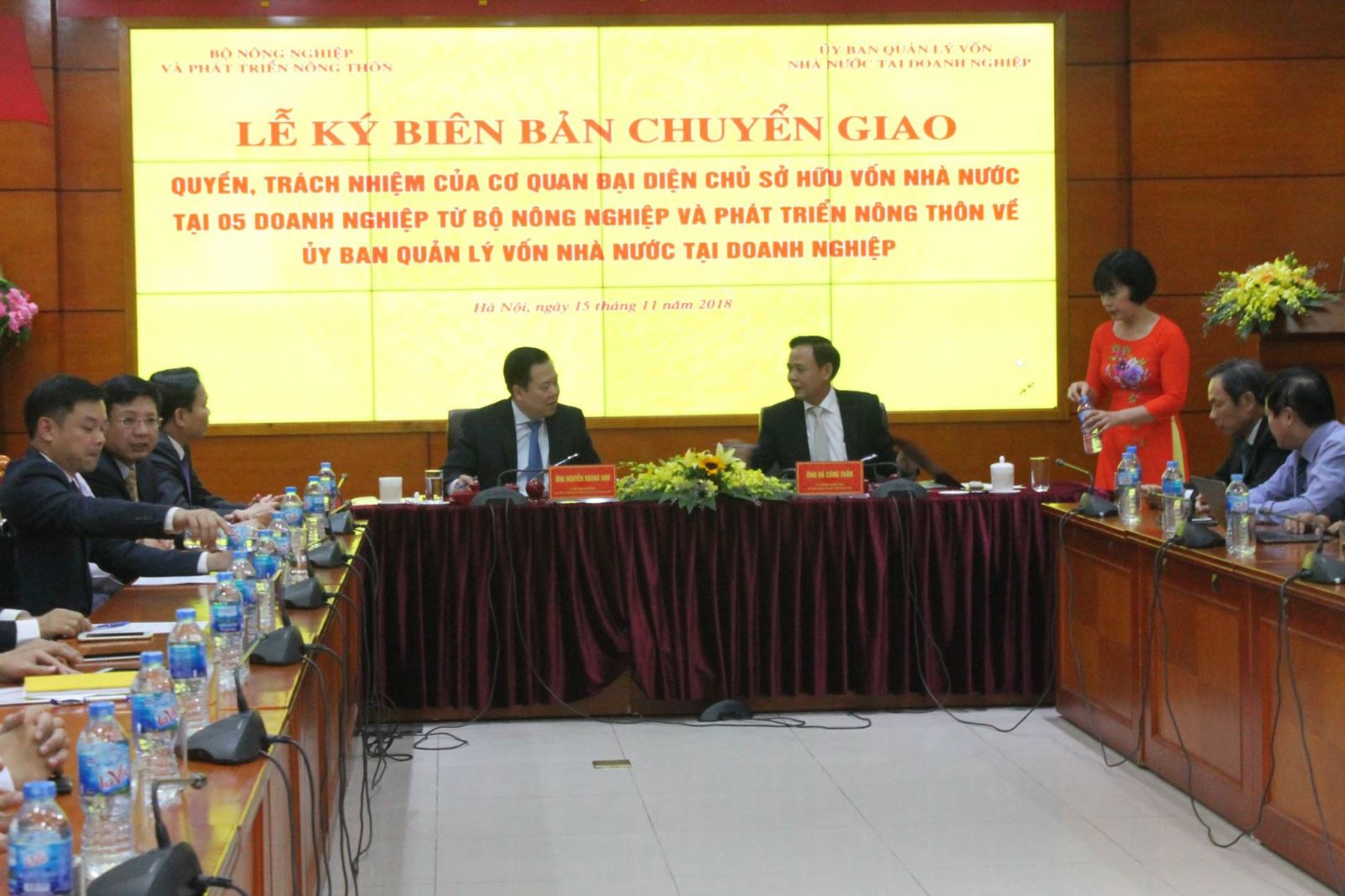 Phát biểu tại lễ ký kết, Thứ trưởng Thường trực Bộ NNPTNT Hà Công Tuấn cho biết, 5 doanh nghiệp được bàn giao cho Uỷ ban Quản lý vốn nhà nước tại doanh nghiệp gồm: Tập đoàn Công nghiệp cao su Việt Nam, Tổng Công ty Lâm nghiệp Việt Nam, Tổng Công ty Cà phê Việt Nam, Tổng Công ty Lương thực Miền Bắc, Tổng Công ty Lương thực Miền Nam. Số vốn của 5 doanh nghiệp này khoảng 50.000 tỷ đồng (trong đó riêng Tập đoàn Cao su Việt Nam có số vốn khoảng 40.000 tỷ đồng); sở hữu gần 500.000 ha đất nông lâm nghiệp.