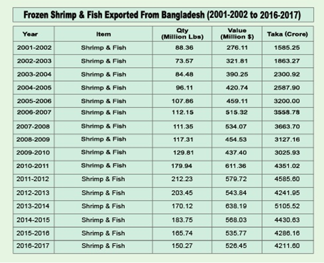 Theo ông Haque, nhu cầu tôm cũng bị ảnh hưởng bởi đồng bảng Anh yếu đi và cuộc chiến thương mại Mỹ – Trung Quốc tiếp diễn. Tôm nước ngọt và nước lợ đang là sinh kế chính của khoảng 800.000 nông dân tại vành đai bờ biểu tây nam, với diện tích sản xuất khoảng 272.000ha. Tôm từng là mặt hàng xuất khẩu lớn thứ 2 của Bangladesh nhưng xuất khẩu tôm đã giảm 4 năm liên tiếp tính đến năm tài khóa 2017-18, xuống còn 408 triệu USD, mức thấp nhất kể từ năm tài khóa 2011-12, theo Cơ quan Xúc tiến Xuất khẩu Bangladesh cho hay. Xuất khẩu tôm 5 tháng đầu năm tài khóa 2018-19 cũng giảm 21% xuống còn 189 triệu USD so với cùng kỳ năm tài khóa trước.