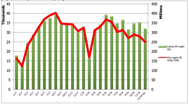 Vinacas nhận định, các nhà máy sản xuất chế biến Việt Nam dường như đã lên kế hoạch cho việc nghỉ Tết cổ truyền và sửa sang, nâng cấp nhà xưởng, máy móc thiết bị để phục vụ cho năm 2019.
