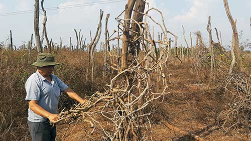 3.000 trụ tiêu đều chết sạch khiến gia đình ông Hồ Hồng Lam mất hàng tỷ đồng và lâm cảnh nợ nần. Ảnh: T.H |
