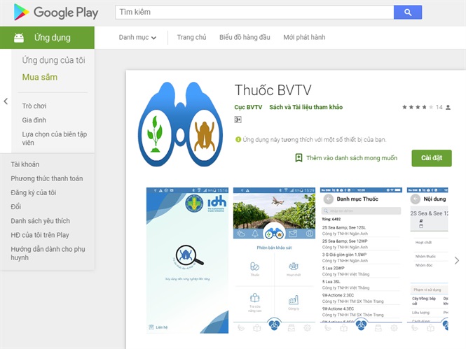 Có thể tải phần mềm thuốc BVTV trên hệ thống Apple store và Google Play |