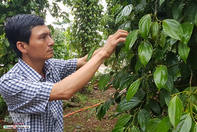 Anh Trần Văn Hải ở thôn An Hướng, xã Gio An phấn khởi khoe, gia đình anh an tâm với đầu ra của hồ tiêu, hơn nữa giá bán còn cao hơn sản xuất truyền thống nên thu nhập cũng khá hơn.