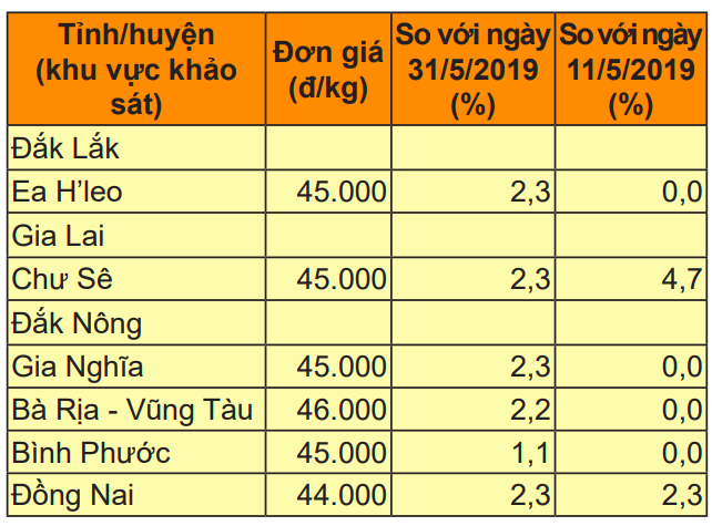 Giá hạt tiêu tại một số tỉnh/huyện khu vực khảo sát ngày 11/6/2019. Nguồn: Tintaynguyen.com |
