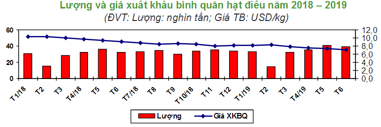 Thị trường xuất khẩu hạt điều tháng 6/2019