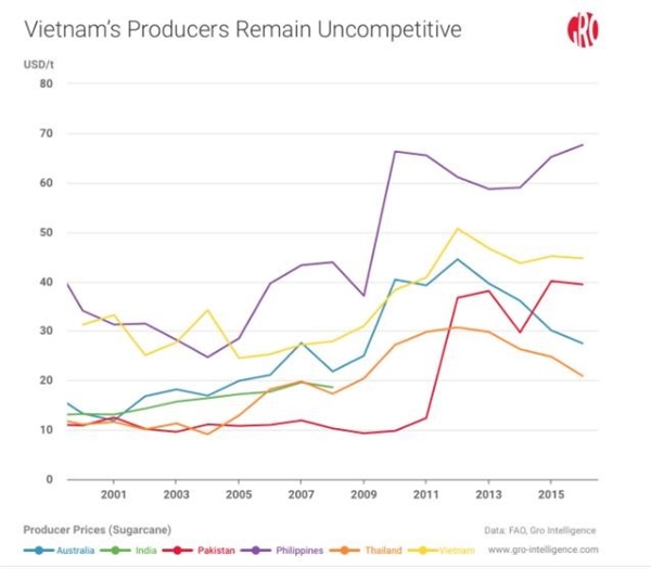 Ngành mía đường Việt Nam có sức cạnh tranh kém. |