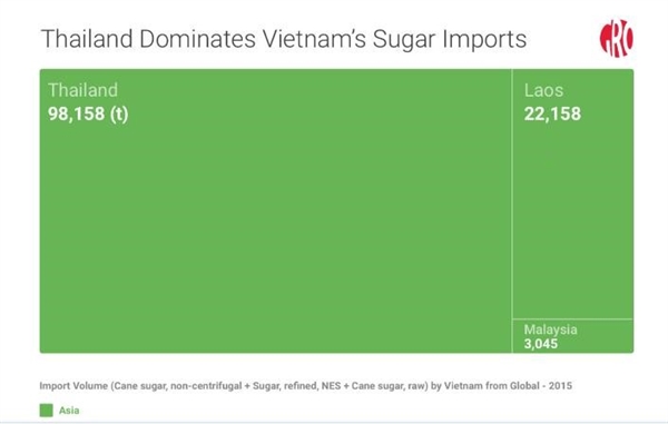 Thái Lan chiếm lĩnh thị trường đường nhập khẩu của Việt Nam trong khối ASEAN. |