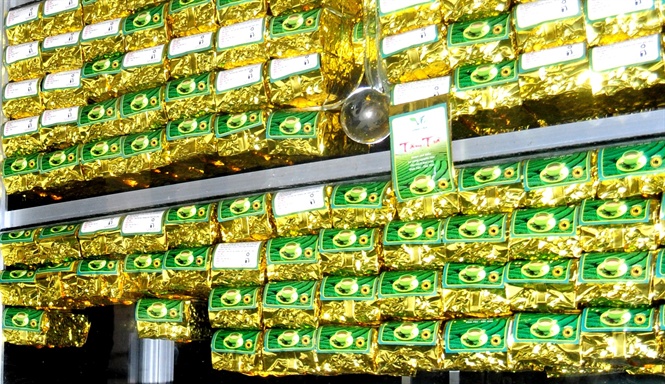 Sản phẩm của làng nghề chè Vĩnh Tân được đóng gói có truy xuất nguồn gốc. |