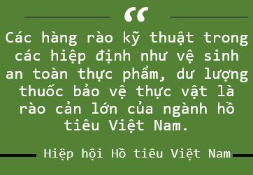 “Các hàng rào kỹ thuật trong các hiệp định như vệ sinh an toàn thực phẩm, dư lượng thuốc bảo vệ thực vật là rào cản lớn của ngành hồ tiêu Việt Nam”, Hiệp hội Hồ tiêu Việt Nam nhận định.