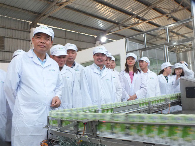 Ngành sữa Việt Nam đang đứng trước cơ hội lớn để XK sang thị trường Trung Quốc (Trong ảnh: Bộ trưởng Bộ NN-PTNT Nguyễn Xuân Cường thăm NM chế biến sữa của Mộc Châu Milk). |