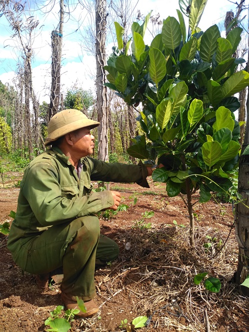 Ngay lập tức, vừa tìm cách cứu vãn vườn tiêu, ông vừa trồng xen được 60 cây bơ ở những nơi trụ tiêu đã chết hẳn.