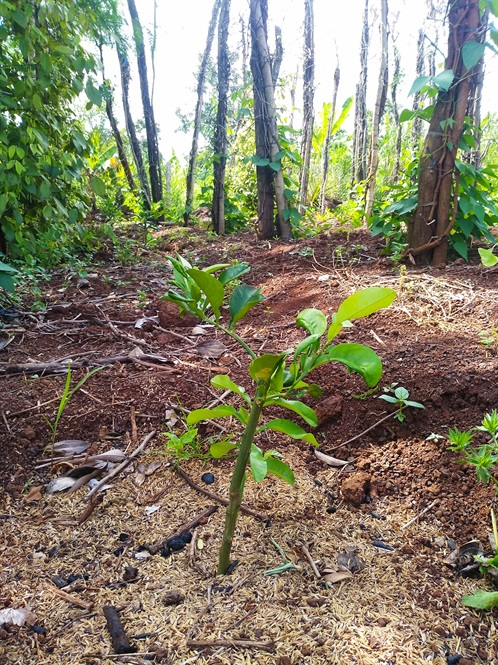 Người dân trồng xen cây bưởi trong hồ tiêu đã chết. |