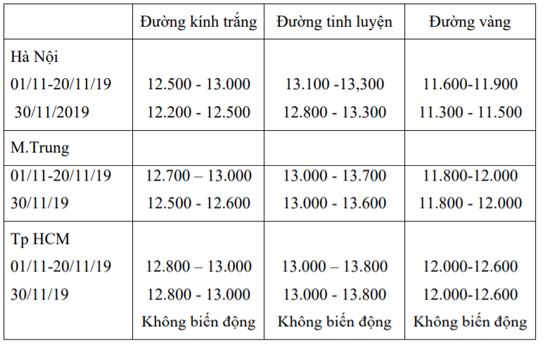Giá đường lậu Thái Lan trong tháng 11 tại một số tỉnh thành gồm TP HCM dao động khoảng 11.600 – 12.400 đồng/kg, các thành phố, thị xã Miền Trung khoảng 11.600 – 11.800 đồng/kg, Hà Nội và các thành phố xung quanh khoảng 11.600 – 11.900 đồng/kg.