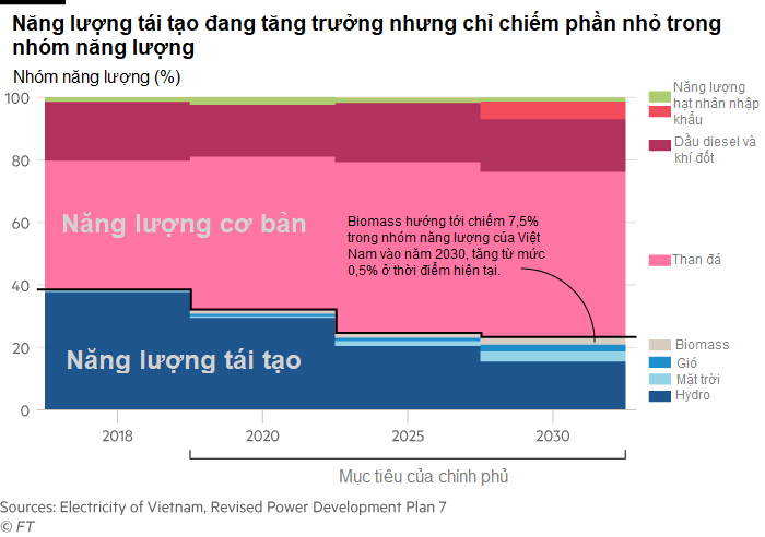 Đến năm 2030, chính phủ đang hướng tới năng lượng tái tạo, gồm cả biomass nhưng không gồm thủy điện, chiếm 7,5% sản lượng điện của Việt Nam, tăng từ hơn 0,5% ở thời điểm hiện nay.
