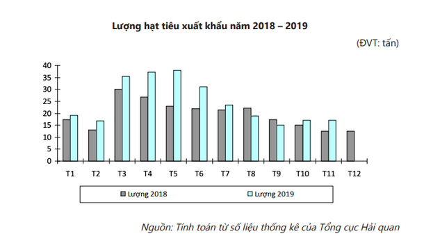Giá tiêu xuất khẩu bình quân đạt mức 2.522 USD/tấn, giảm 22,7% so với 11 tháng đầu năm năm 2018.