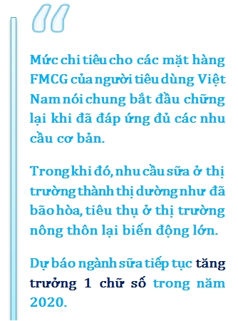 Theo phân tích của Công ty chứng khoán này, mức chi tiêu cho các mặt hàng FMCG của người tiêu dùng Việt Nam nói chung bắt đầu chững lại khi đã đáp ứng đủ các nhu cầu cơ bản. Thay vào đó, họ thường chuyển sang chi tiêu theo sở thích để thỏa mãn các nhu cầu cao hơn (như là ăn/uống bên ngoài) và chi tiêu cho các mặt hàng không thiết yếu nhằm mục đích chung là nâng cao chất lượng cuộc sống. Trong khi nhu cầu sữa ở thị trường thành thị dường như đã bão hòa, tiêu thụ ở thị trường nông thôn lại biến động lớn do tăng phụ thuộc vào giá mặt hàng nông nghiệp, tùy vào mức thu nhập khả dụng tại thị trường này quyết định mức chi tiêu cho các sản phẩm FMCG.