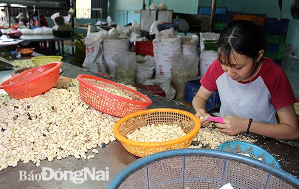 Chế biến điều tại Công ty TNHH một thành viên thương mại Minh Nghĩa Thịnh (huyện Xuân Lộc). Ảnh: B.Nguyên |