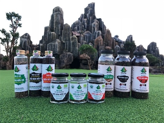 Điển hình như tiêu hữu cơ (sạch 600 chất) gồm tiêu đỏ, tiêu sọ, tiêu đen, tiêu xanh; tiêu sạch (sạch 30 chất) gồm tiêu đỏ, tiêu sọ, tiêu đen, tiêu xanh, tiêu xanh chuỗi, tiêu xanh sấy khô, tiêu vàng, tiêu đa màu, tiêu xanh ngâm mắm, tiêu xanh chua ngọt… và các dòng tiêu VietGAP.