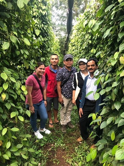 Các nhà nông nghiệp Ấn Độ, Philippin tìm đến vườn tiêu hữu cơ của HTX Nam Yang để tham quan, học hỏi kinh nghiệm. |