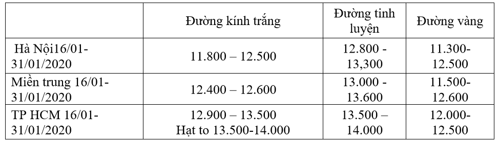 Sau Tết giá có dấu hiệu tăng lên chút ít nếu tính cho các ngày cuối tháng 1/2020, đặc biệt tại thị trường miền Bắc và Hà Nội, tùy phẩm cấp đường (chất lượng và cỡ hạt) có giá khác nhau.