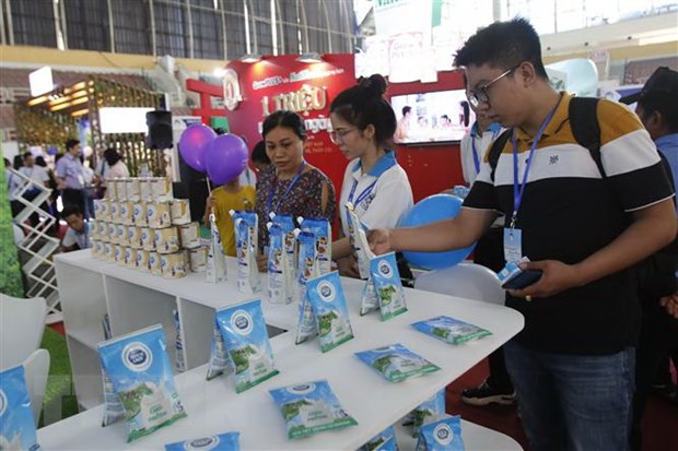 Khách tham quan các gian hàng sữa tại Triển lãm Quốc tế ngành sữa và sản phẩm sữa. (Ảnh: Hoàng Hải/TTXVN) |