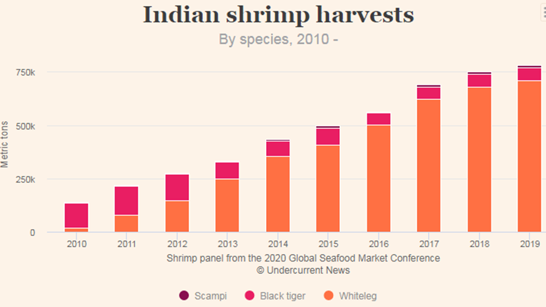 Tại Hội nghị Thị trường Thủy hải sản Toàn cầu (GSMC) thường niên diễn ra vào tháng 1/2020 tại Mỹ, các chuyên gia vẫn dự báo sản lượng năm 2020 sẽ tăng, đạt khoảng 4 triệu tấn (Dự báo của GSMC luôn thấp hơn so với của GOAL). Cả 2 dự báo này đều cho rằng sản lượng của 2 nước này sẽ tăng trong năm 2020. Tuy nhiện, lệnh phong tỏa 21 ngày khiến cho nguồn cung hải sản của Ấn Độ ngay cả trong tháng 4/2020 cũng trở nên thiếu chắc chắn. Nhiều nhà máy chế biến và đóng gói ở nước này đã dừng hoạt động. Doanh thu của người nông dân quy mô nhỏ cũng như các doanh nghiệp có liên quan đến lĩnh vực này bị sụt giảm. Nhiều người nuôi tôm nước này sẽ không thể sớm hồi phục sản xuất sau dịch bệnh.