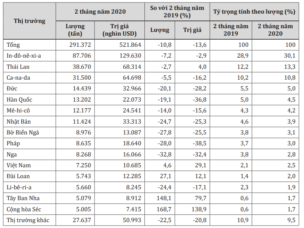 Indonesia, Thái Lan, Bờ Biển Ngà, Việt Nam và Liberia là các thị trường cung cấp cao su tự nhiên lớn nhất cho Mỹ trong 2 tháng đầu năm 2020.