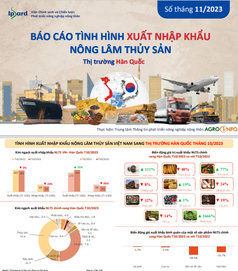BÁO CÁO TÌNH HÌNH XNK NLTS SANG THỊ TRƯỜNG HÀN QUỐC THÁNG 11/2023
