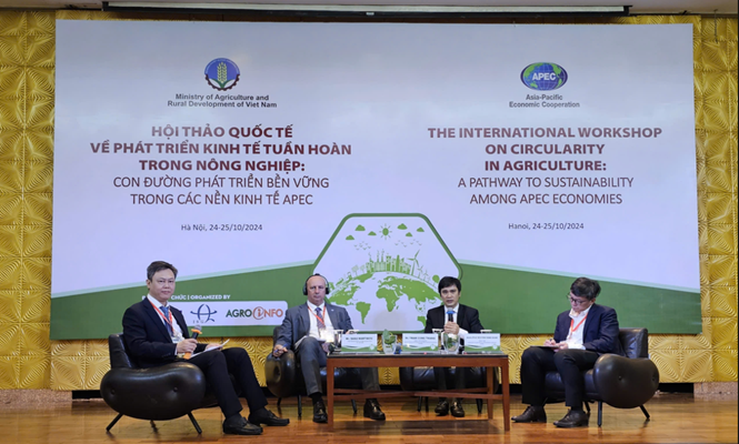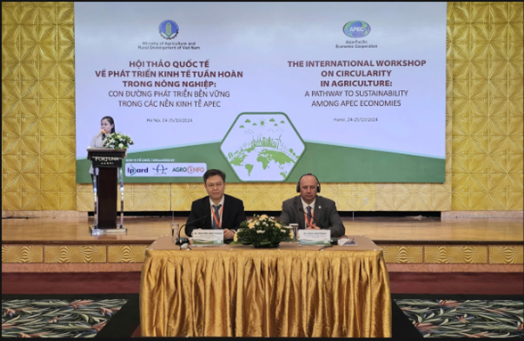 Hội thảo quốc tế về “Phát triển kinh tế tuần hoàn trong nông nghiệp: Con đường phát triển bền vững trong các nền kinh tế APEC” được Viện Chính sách và Chiến lược phát triển nông nghiệp nông thôn (PTNNNT), Vụ Hợp tác Quốc tế và Ban thư ký Tổ chức hợp tác kinh tế Châu Á-Thái Bình Dương (APEC) phối hợp tổ chức. Hội thảo nhằm cung cấp một bức tranh tổng quát về phát triển nông nghiệp tuần hoàn, các khung chính sách hỗ trợ, các mô hình nông nghiệp tuần hoàn điển hình góp phần vào mục tiêu tăng trưởng “xanh”, tăng cường sự tham gia của các doanh nghiệp vừa và nhỏ, và cải thiện khả năng tiếp cận sản phẩm nông nghiệp tuần hoàn của các nền kinh tế APEC tới thị trường toàn cầu.