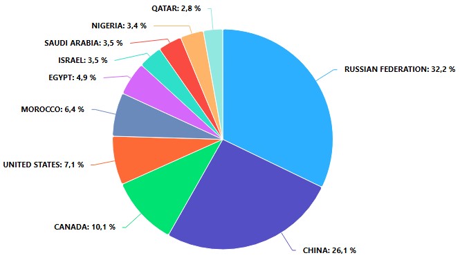 Danh sách 10 quốc gia cung cấp phân bón lớn nhất cho thị trường Brazil, kèm theo thị phần tương ứng của từng quốc gia trong tổng kim ngạch nhập khẩu phân bón, hiện đã được Datamar công bố và cập nhật trên nền tảng DataLiner.
