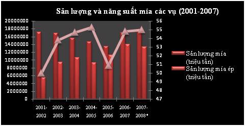 Niên vụ 2006/07, diện tích và năng suất mía đều đạt mức cao hơn so với niên vụ 2005/06. Sản lượng mía cả nước tăng và đạt khoảng 17 triệu tấn, đạt mức xấp xỉ với sản lượng mía các vụ năm 2002 và 2003. Năng suất mía được cải thiện đáng kể, đạt 54,8 tấn/ha. Tuy nhiên, nếu so với niên vụ 2004/05 thì năng suất niên vụ mía 2006/07 vẫn thấp hơn khoảng 1 tấn/ha. Năng suất mía niên vụ 2004/05 ở mức 55,3 tấn/ha. Nhìn chung, năng suất mía có được cải thiện, nhưng vẫn thấp so với năng suất mía của thế giới (75 tấn/ha) và khu vực: Trung Quốc và Ấn Độ 76 tấn/ha, Thái Lan 70 tấn/ha, Úc 83 tấn/ha.